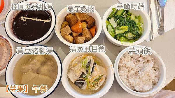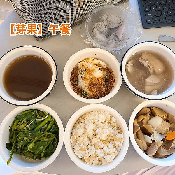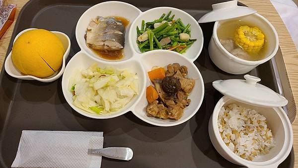 午餐有附水果,湯品未用保溫瓶裝,所以感覺熱度都不太夠,因為個人偏愛熱熱的湯,所以都需要另外拿去微波加熱。餐點菜色多元也夠味好吃!
