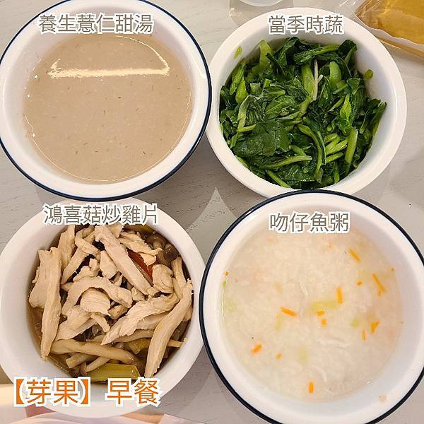 因為這胎一樣想拼全親餵,所以湯湯水水少不了!元氣御守產後護理家除了每天提供三大壺止渴飲外,還提供了三家月子餐可選擇,原則上可以一週換一家,嚐嚐不同口味,我覺得其實三家菜色都不錯,而在份量、保溫程度以及搭配的茶飲部份,各家特色不同,另外在飯、配菜的份量以及茶飲種類跟份量都可以調整,當然我都選擇發奶茶加量,所以每天早餐都會再多拿到一包發奶茶。另外,由於小小魚放學回來以後會與我共渡晚餐,所以後來也把飯及菜加量,份量還算足夠!